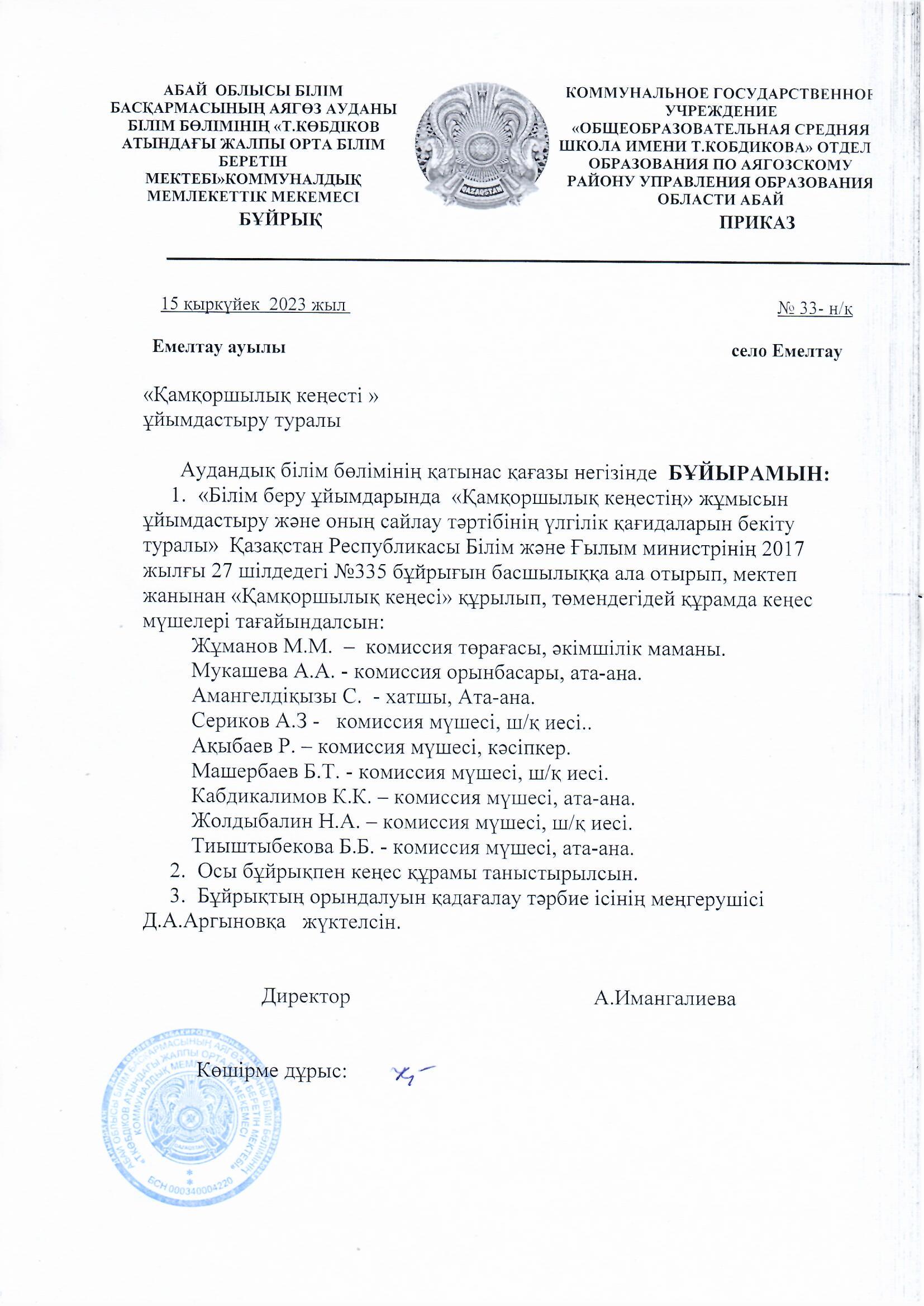 » "Қамқоршылық кеңесті" ұйымдастыру туралы бұйрық
