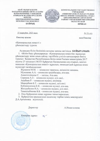"Қамқоршылық кеңесті" ұйымдастыру туралы бұйрық