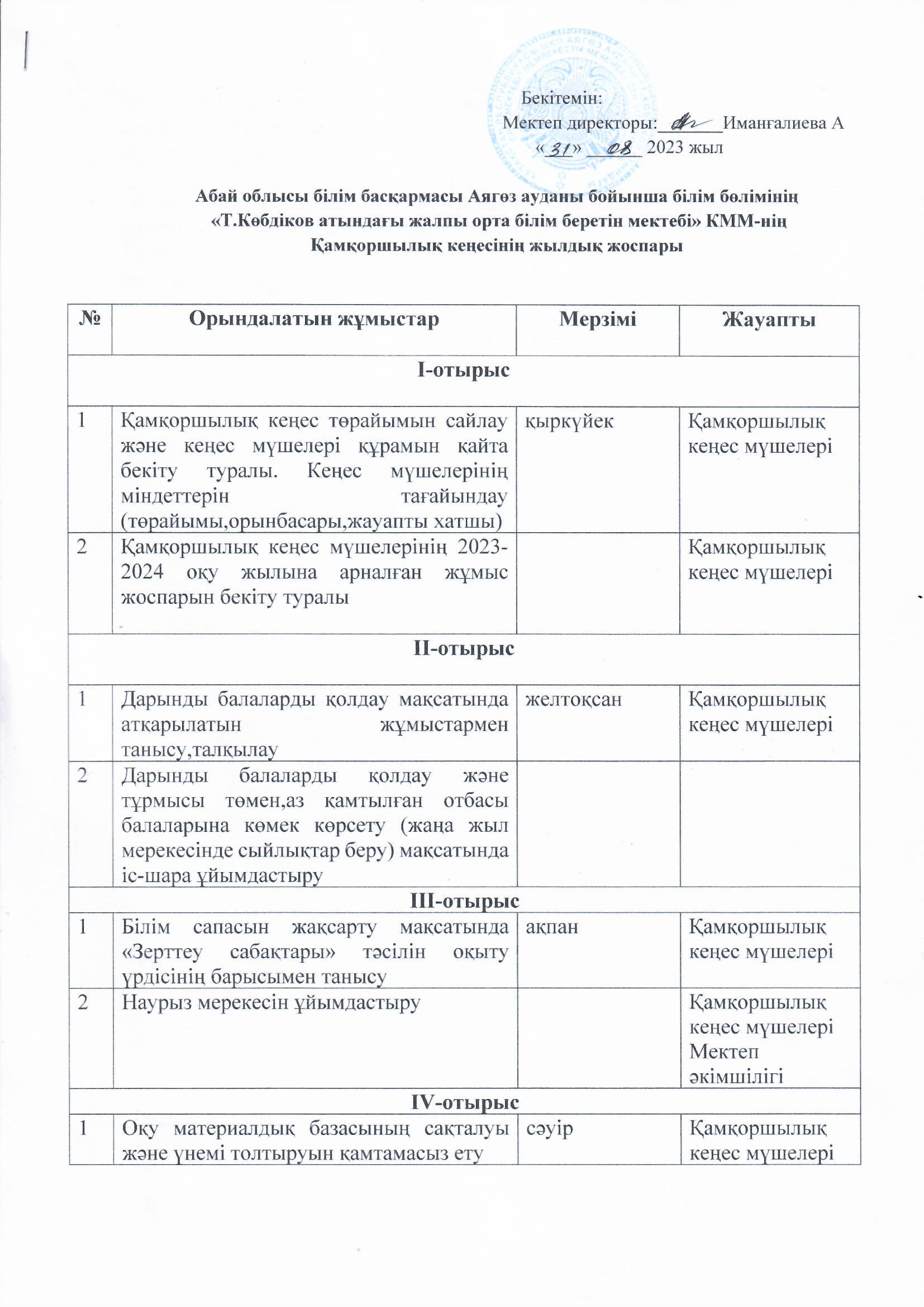» Қамқоршылық кеңесінің жылдық жоспары