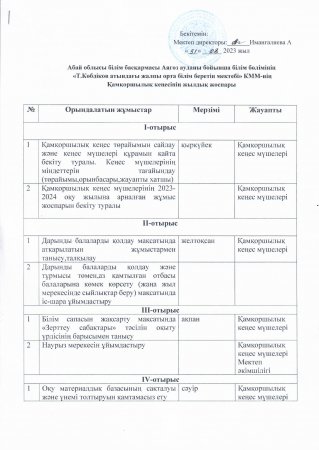 Қамқоршылық кеңесінің жылдық жоспары