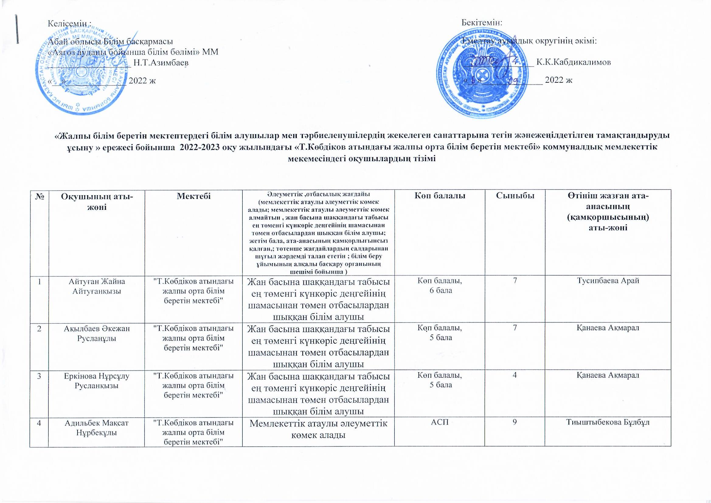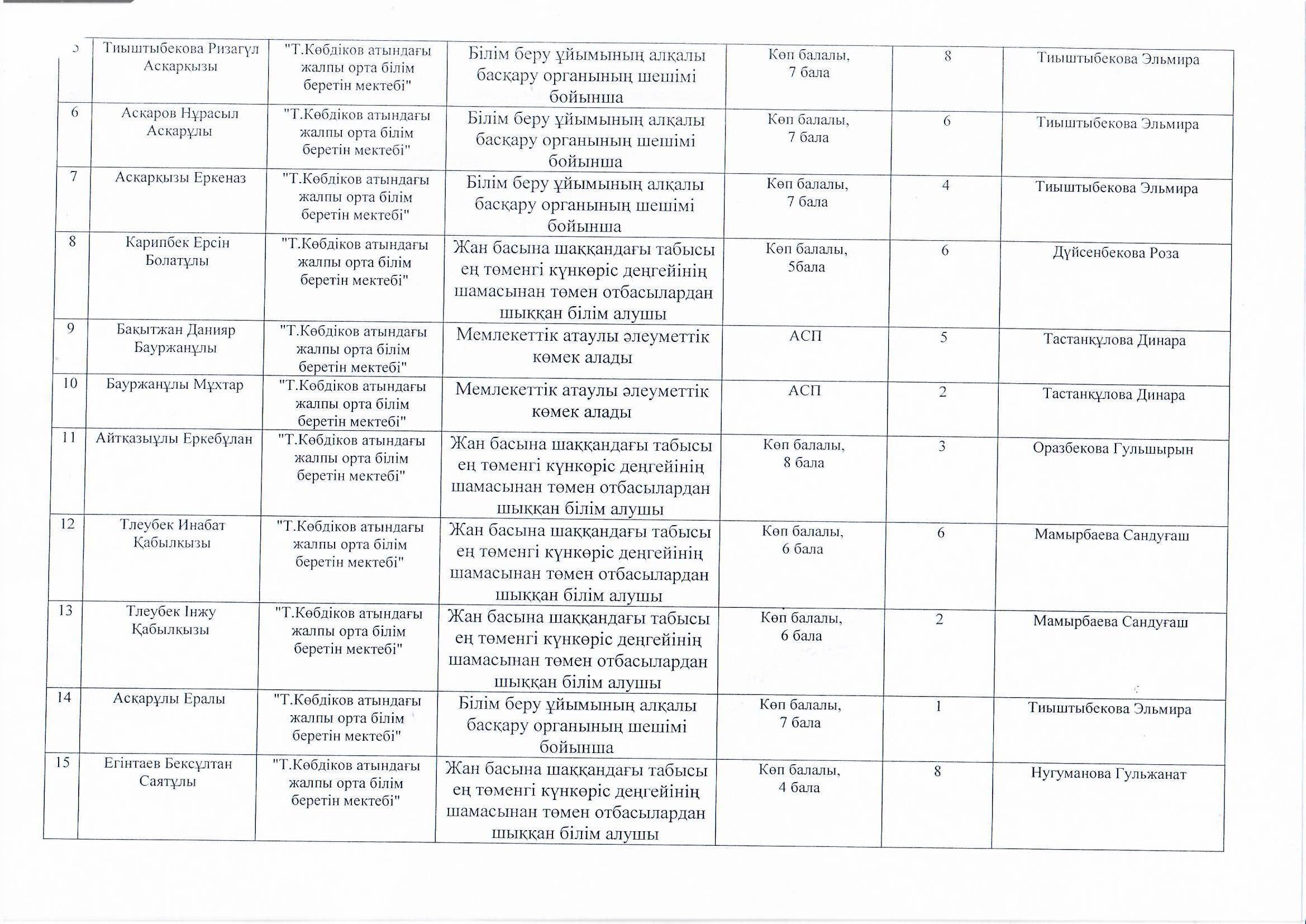 Оқушылар тізімі