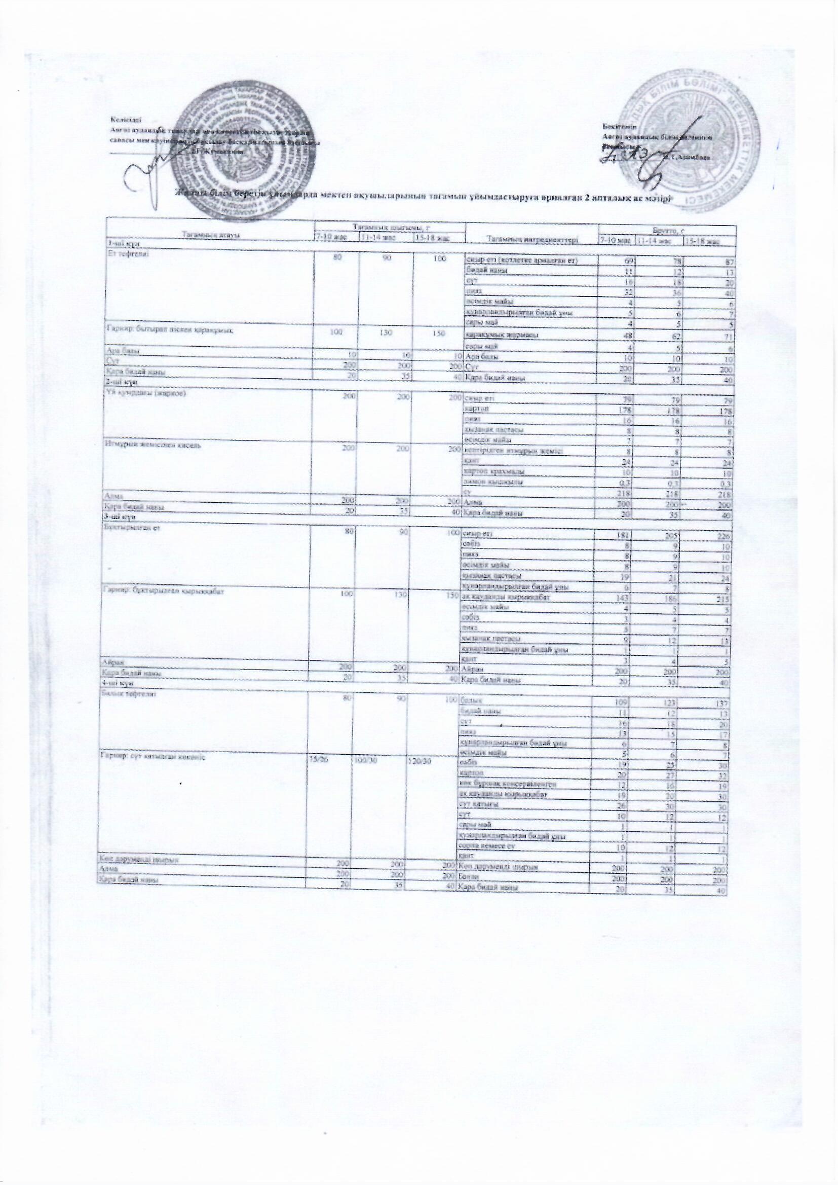 » Оқушылардың тағамын ұйымдастыруға арналған 2 апталық ас мәзірі
